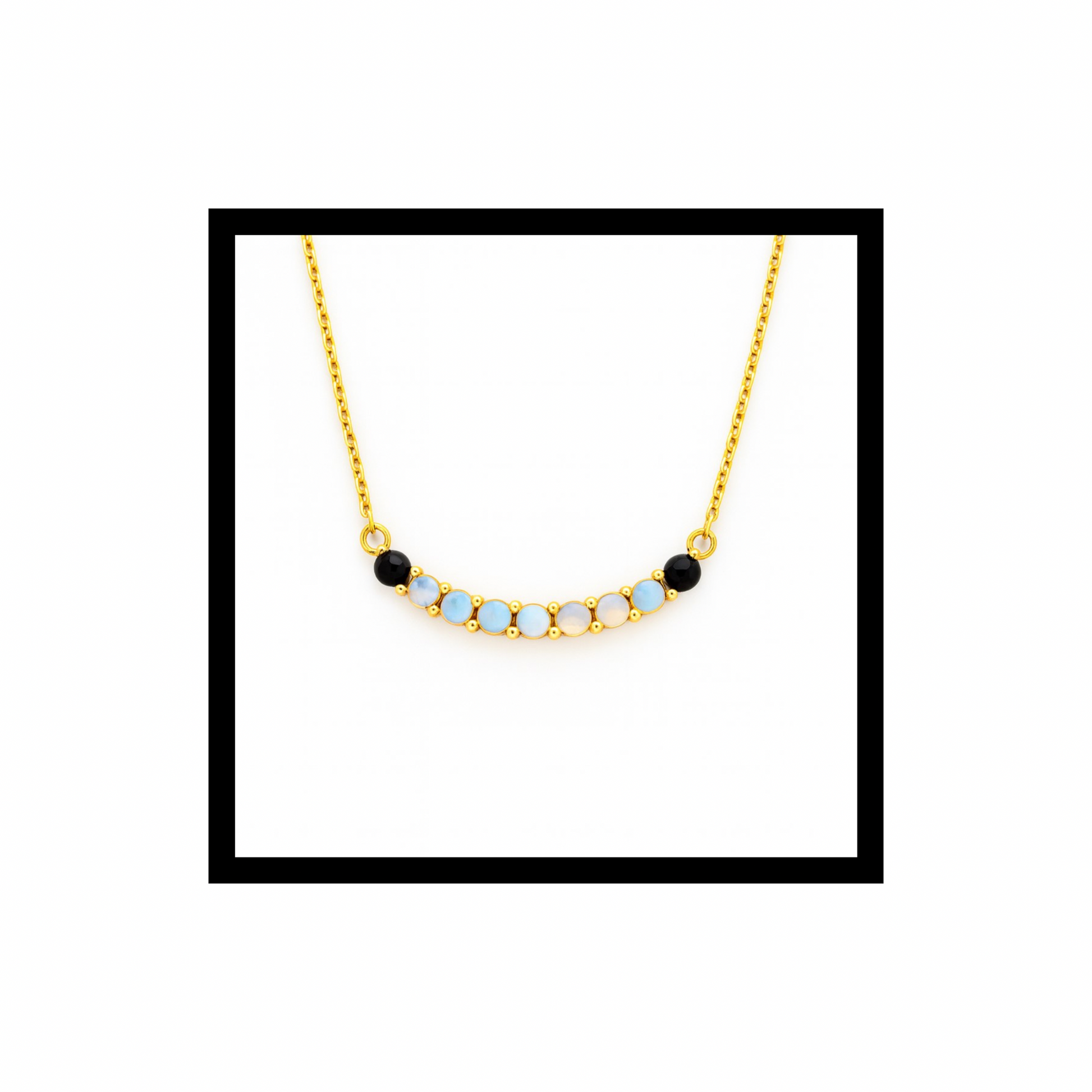 Riverbend Necklace Rainbow Moonstone + Black Onyx in 10K Gold