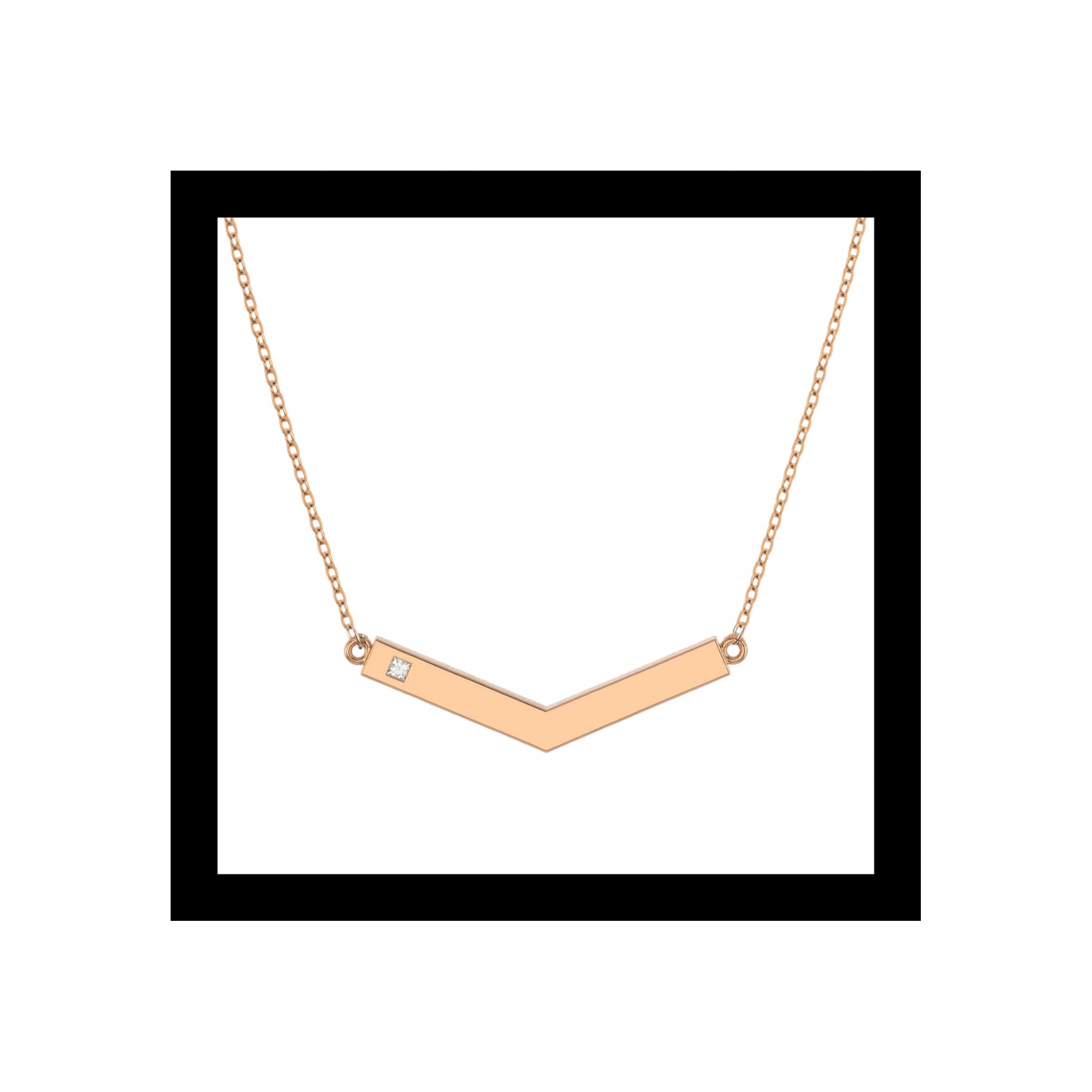 A quiet chevron in rose gold, marked with a single champagne diamond.